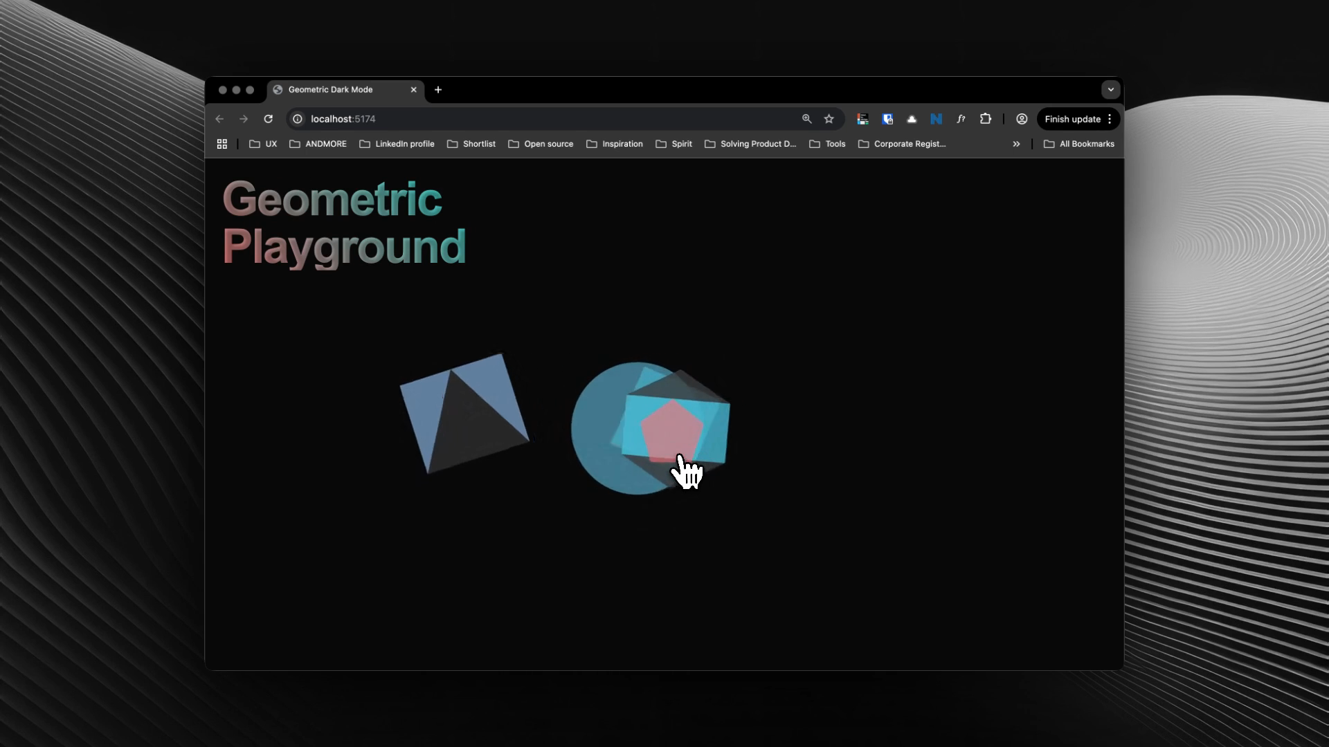 I explore form, motion, and systems outside client work—creative experiments that sharpen my thinking and fuel better product decisions. Some are conceptual explorations, others are deliberate exercises to push craft and solve visual problems in new ways.